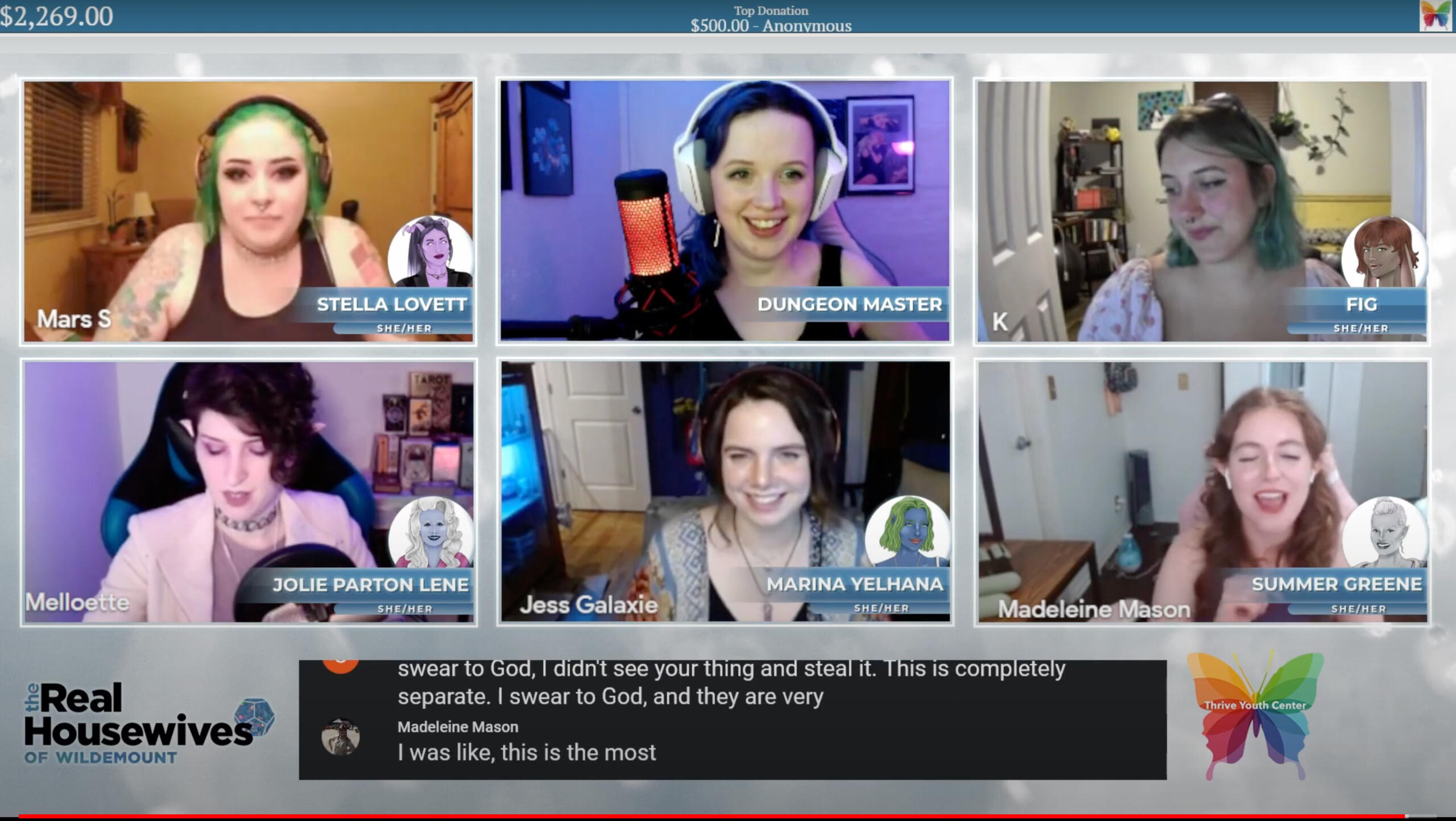 Twitch streamer Oopsallsmurph ran a charity stream for Thrive Youth Center, raising funds for homeless LGBTQ+ community in San Antonio. The theme of the Tabletop RPG was a Real Housewives parody within the Dungeons & Dragons universe.Overall, I emphasized the opulent nature of the personas on the show.